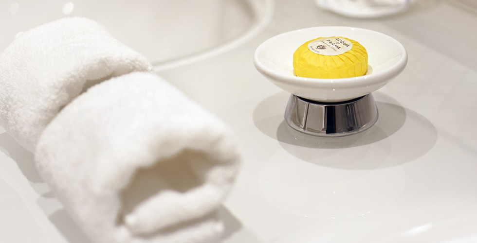 Offering 301 rooms and suites, each decorated in the air of 19th-century Lombard designs, rooms are spacious and beautiful. The suites, in fact, are taken to an entirely different level as many have multiple areas which include sitting rooms, offices and cozy bedrooms with large marble baths attached. Rooms feature high speed internet, a refrigerated bar and Milan’s most incredible bathrooms (fantastically spacious showers, included) stocked with toiletries from Acqua di Parma. I was welcomed to my suite with a chilled bottle of prosecco and chocolate-dipped fruit, which ws a lovely touch.