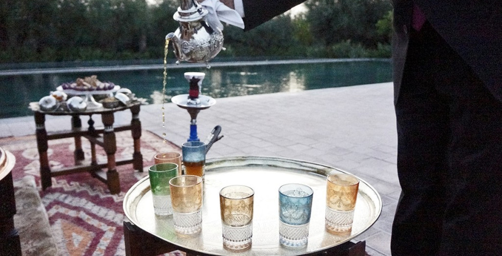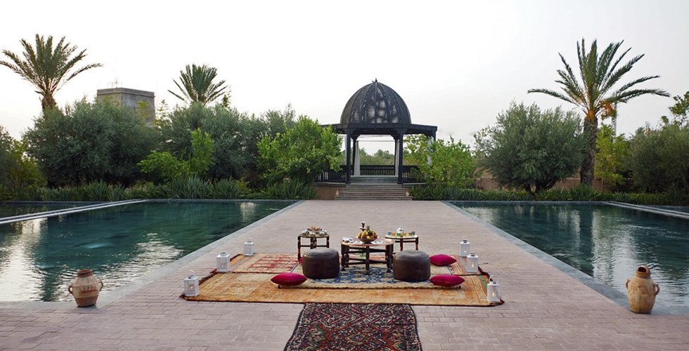 Finding an experience that is totally unique and beautiful in Marrakech isn’t hard, but add “magical” and there is one event that stands out – tea at Le Palais Selman. The Selman offers guests a moment of serenity near their incredible spa in an effort to bring you into the moment and allow you to enjoy traditional Moroccan tea in the most luxurious way. The staff can organize a private seating area overlooking two reflecting pools and beyond to the desert palms. Set amongst antique rugs and seats, a small station with mint tea, dates, pastries, fruit and nuts await. A Moroccan player sits nearby and sings softly – his voice carried over the night breeze.