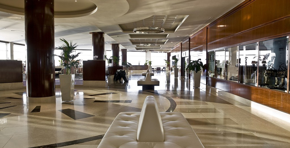 The lobby of the hotel is large and impressive – a reception and concierge desk greeting you upon check-in and a casino calling your name towards the rear of the space. Any time of the day you can try your luck in the casino and, if you win, upgrade yourself to one of the hotel’s impressive suites with commanding views of the blue sea.